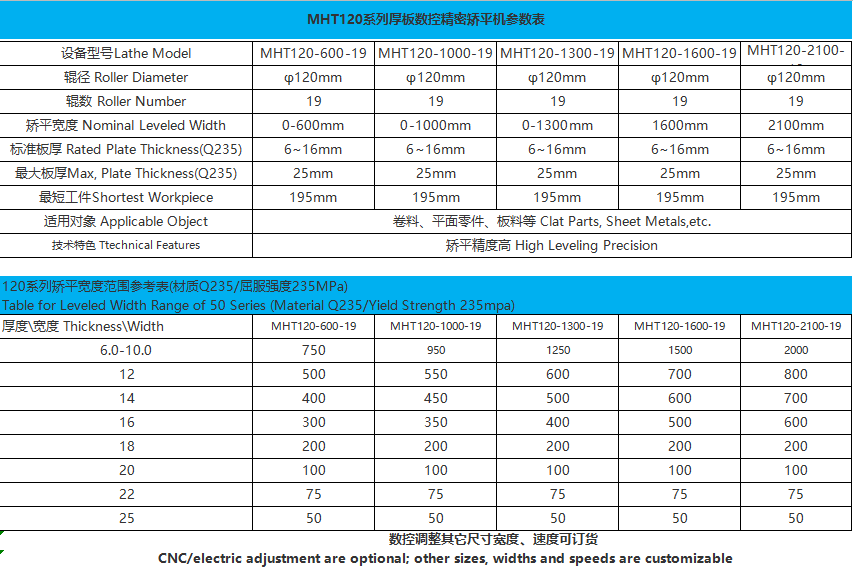 全自動MHT120數控矯平機適用4-20mm厚金屬可定做不同寬度(400-2300mm寬),鋼板,不銹鋼,銅板,鋁板,網孔板等材料,可根據客戶不同材料要求定制生產。金屬材料在較大彈塑性彎曲條件下,不管其原始彎曲程度有多大區別,數控精密矯平機利用材料的“包辛格效應”對板材進行多次反復彎曲,逐漸減小壓彎撓度,使多種原始曲率逐步變為單一曲率,并將其矯平,達到工藝要求的平整精度。